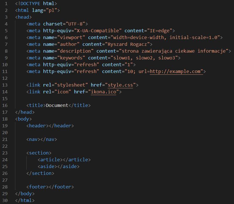 W tej strukturze znajdziesz różnorodne sekcje, takie jak head i body. Dziwne, prawda? W